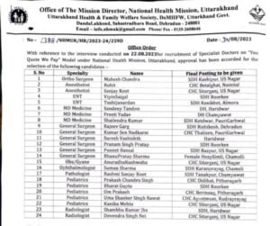 देहरादून उत्तराखण्ड में स्पेशलिस्ट और सुपर स्पेशलिस्ट डॉक्टरों की पहली तैनाती कर दी गई है। डॉक्टरों को ‘यू कोट-वी पे‘...