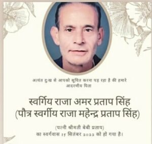 देहरादून स्वर्गीय राजा महेंद्र प्रताप सिंह के पौत्र स्वर्गीय राजा अमर प्रताप सिंह का देहांत हो गया है जिस कारण...
