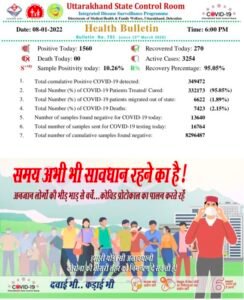 देहरादून, 8 जनवरी। उत्तराखंड में आज कोरोना के मामलों में जबरदस्त उछाल आया है। आज प्रदेश में 1560 संक्रमण के...