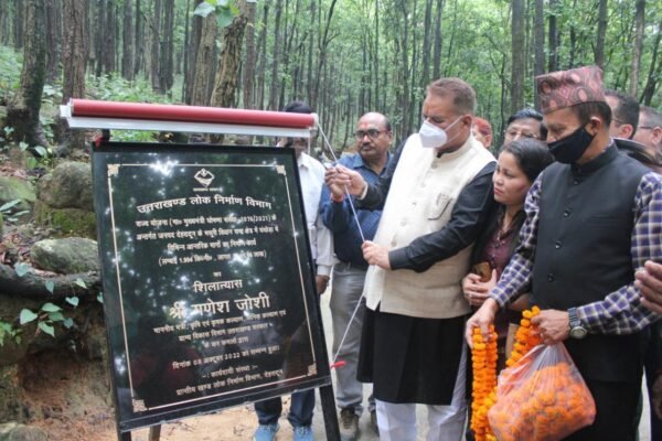 विदित हो कि पिछले कई वर्षो से ग्रामीण सड़क की मांग कर रहे थे जिसका आज कैबिनेट मंत्री गणेश जोशी ने 82 साल के लंबे इंतजार के बाद आंतरिक सड़क मार्ग का विधिवत शिलान्यास कर क्षेत्र वासियों को बड़ी सौगात दी। इस अवसर पर ग्रामीणों ने मंत्री गणेश जोशी का आभार व्यक्त करते हुए कहा कि मंत्री गणेश जोशी हर सुख दुःख में आम जनमानस के साथ खड़े रहते है और विकास कार्यों में सबसे आगे रहते है। वहीं कैबिनेट मंत्री गणेश जोशी ने मौके पर मौजूद सड़क का निर्माण कार्य कर रही कार्यदायी संस्था लोक निर्माण विभाग के अधिकारियों को निर्देश देते हुए कहा कि सड़क के निर्माण कार्य समय सीमा के अंदर हो । साथ ही सड़क के निर्माण कार्य में गुणवत्ता का विशेष ध्यान रखा जाए। वहीं इसके साथ ही ग्रामीणों ने मंत्री जोशी के समक्ष अपनी विभिन्न समस्याओं को भी रखा जिसपर मंत्री जोशी ने सभी समस्याओं को समाधान का भरोसा भी दिलाया।