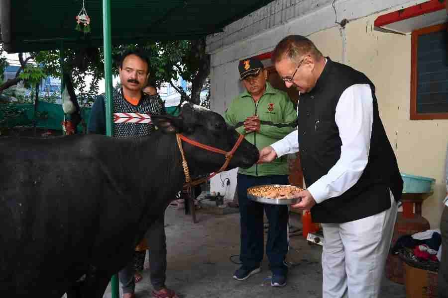 सुबे के कृषि मंत्री गणेश जोशी ने देहरादून के नयागांव स्थित गौशाला में गोवर्धन पूजा के अवसर पर गौमाता की पूजा अर्चना कर उनका आर्शीवाद लिया और उन्हें गुड तथा चना खिलाया।