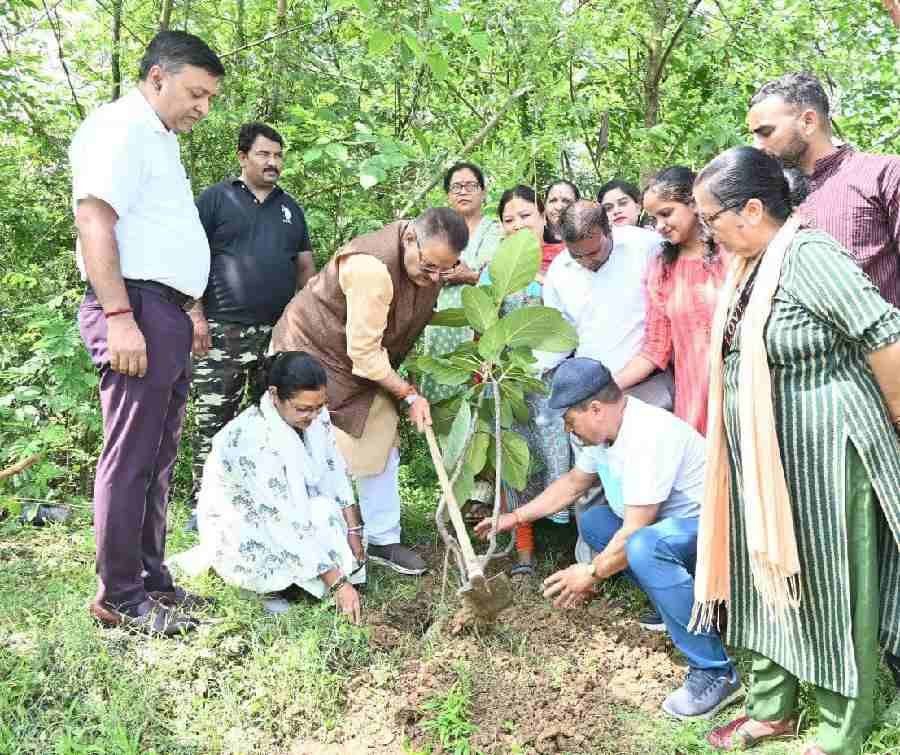उन्होंने कहा राज्य सरकार द्वारा 02 करोड़ विभिन्न प्रजाति के पौधों का रोपण का लक्ष्य रखा गया है। कृषि मंत्री ने कहा उद्या, ग्राम्य विकास और रेशम विभाग द्वारा संयुक्त रूप से 17.50 लाख से अधिक पौधों का वृक्षारोपण का लक्ष्य रखा गया है। जिसके क्रम में आज प्रदेशभर में पौधों का रोपण किया जा रहा है। मंत्री गणेश जोशी ने कहा वृक्ष लगाने के बाद उसके संवर्धन की जिमेदारी महत्वपूर्ण होती है। उन्होंने सभी संस्थाओं और आम जन को वृक्ष लगाने के बाद उसके संवर्धन का भी आवाह्नन किया। इस अवसर पर मंत्री गणेश जोशी ने प्रधानमंत्री नरेन्द्र मोदी के एक पेड़ मां के नाम अभियान में मां के सम्मान में एक वृक्ष लगाने का भी आव्हान किया। उन्होंने वृक्षारोपण के उपरांत उसके संवर्धन के लिए पौधे का मां की भांति ही देखभाल करने की अपील भी की और सभी को वृक्षों के रोपण के बाद उनके संवर्धन का भी संकल्प दिलाया। इस दौरान मंत्री गणेश जोशी ने देहरादून के ग्राम पंचायत धनौला स्थित प्लास्टिक कचरा प्रबंधन केंद्र के परिसर में भी वृक्षारोपण किया। मंत्री ने प्लास्टिक कचरा प्रबंधन केंद्र में महिलाओं द्वारा किए जा रहे अभिनव प्रयोग की भी सराहना की।