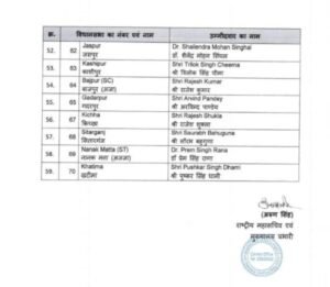 भारतीय जनता पार्टी के 59 प्रत्याशियों की पहली लिस्ट जारी हो गई है। इस सूची में अधिकांश सीटिंग विधायकों को ही टिकट दिया गया है। देहरादून में हॉट सीट बनी कैंट विधानसभा सीट पर इस समय कई दावेदार थे और वे काफी समय से जम कर जनसंपर्क में जुटे हुए थे। उन सभी की तैयारियां धरी की धरी रह गई हैं और कैंट सीट से दिवंगत हरबंस कपूर की पत्नी सविता कपूर को टिकट दिया गया है। भाजपा ने अपनी इस सूची में 10% महिलाओं को स्थान दिया है। मुख्यमंत्री पुष्कर सिंह धामी अपनी ही सीट खटीमा से चुनाव लड़ेंगे जबकि श्रीनगर से धन सिंह रावत एक बार फिर से मैदान उतारे गये हैं। लैंसडाउन से दिलीप सिंह रावत को टिकट दिया गया है जबकि पूर्व सीएम बीसी खंडूरी की पुत्री व विधायक ऋतु खंडूड़ी का टिकट काट कर यमकेश्वर से इस बार रेनू बिष्ट को मौका दिया गया है। वहीं पिछले दिनों भाजपा में शामिल हुई सरिता आर्य को नैनीताल सीट से मैदान में उतारा गया है जबकि इस बार खानपुर से कुंवर प्रणव चैंपियन के स्थान पर उनकी पत्नी कुंवर देवयानी को टिकट दिया गया है।