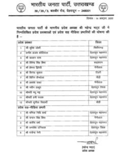 भाजपा ने जारी की 1 दर्जन प्रवक्ताओं 5 सह मीडिया प्रभारियों की सूची जारी