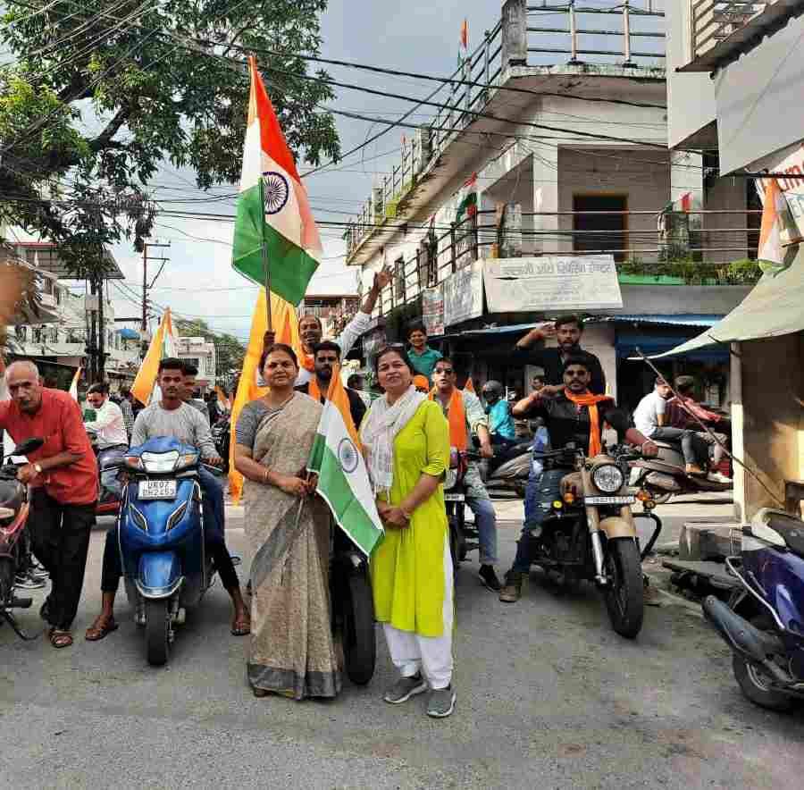 प्रधानमंत्री नरेंद्र मोदी के आव्हान पर पूरे देश भर में आजादी की 75 वीं वर्षगांठ को बड़े धूमधाम से मनाया जा रहा है। राजधानी देहरादून में भी आजादी के अमृत उत्सव के तहत हर घर तिरंगा को लेकर जन जागरूकता अभियान चलाया जा रहा है साथ ही तिरंगा यात्राएं भी निकाली जा रही है। दून के वार्ड नंबर 12 में भी बीजेपी कार्यकर्ताओं द्वारा दुपहिया वाहनों पर तिरंगा यात्रा निकाली गई जिसमे महिलाओं ने भी बढ़चढ़कर भाग लिया। इस दौरान कार्यकर्ताओं में तिरंगा यात्रा को लेकर काफी जोश देखने को मिला।