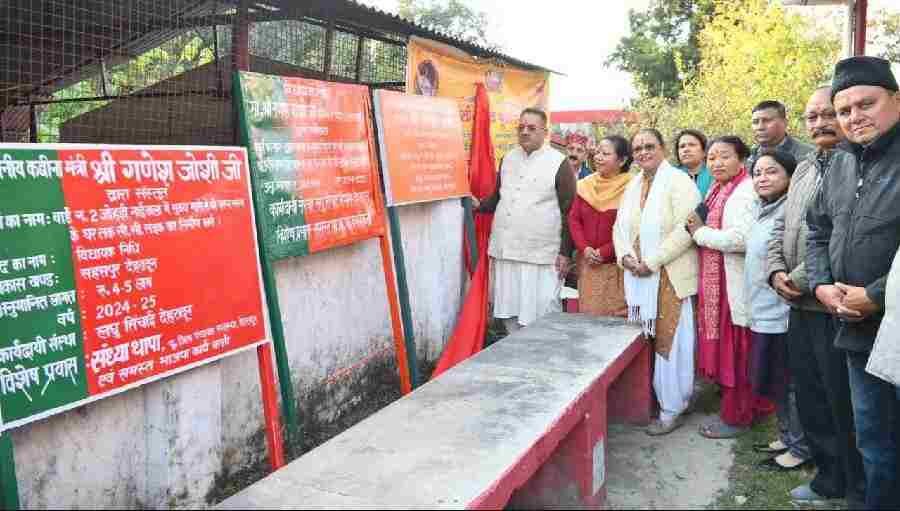 कैबिनेट मंत्री गणेश जोशी ने आज मसूरी विधानसभा क्षेत्र के अंतर्गत देहरादून के अनारवाला स्थित भद्रकाली मंदिर परिवार आयोजित कार्यक्रम में विधायक निधि से स्वीकृत वार्ड 02 विजयपुर के 09 विभिन्न विकास कार्यों (लागत ₹ 55.68 लाख) का शिलान्यास किया गया। शिलान्यास कार्यों में सी.सी सड़क, पुश्ता निर्माण, सुरक्षा दीवार जैसे 09 विभिन्न विकास कार्यों शामिल है। इस दौरान कैबिनेट मंत्री गणेश जोशी ने कहा कि प्रधानमंत्री मोदी के सबका साथ, सबका विकास, सबका विश्वास और सबका प्रयास के नारे को आत्मसात करते हुए प्रदेश के मुख्यमंत्री पुष्कर धामी सरकार जनता की सरकार जनता के द्वार नारे के ध्येय वाक्य के साथ मूलभूत सुविधाओं को सुदृढ़ करने का कार्य कर रही है। उन्होंने कहा पुष्कर सिंह धामी सरकार जिन कामों का शिलान्यास करती है, उनका लोकार्पण भी करती है।