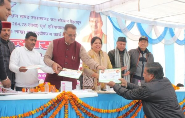 प्रदेश के कृषि एवं ग्राम्य विकास मंत्री गणेश जोशी ने रविवार को देहरादून के जैंतनवाला में जल जीवन मिशन के अर्न्तगत मसूरी विधानसभा के हरियावालाखुर्द के लिए (रुपये 267.84 लाख) एवं घंघोड़ा की पेयजल योजना के लिए (रुपये 284.78 लाख) की योजनाओं का शिलान्यास किया। इसके अलावा मंत्री गणेश जोशी ने प्रधानमंत्री आवास योजना (ग्रामीण) के तहत 19 पात्र परिवारों को आवासों के स्वीकृति पत्रों का भी वितरण किया।
