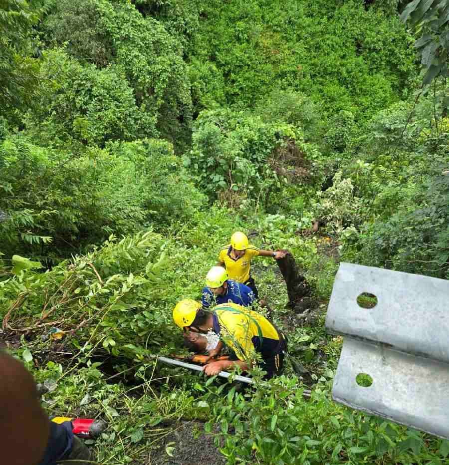 आज दिनांक 13/09/2024 की सुबह करीब 5:00 a.m पर एक टाटा टियागो कार UP-46M/6977 ऋषि आश्रम के पास शिवालिक मैगी प्वाइंट मोड पर गहरी खाई में गिर गई, जिसकी सूचना मिलने पर तुरंत पुलिस मौके पर पहुंची तथा फायर सर्विस व एसडीआरएफ को भी सूचना देकर मौके पर बुलाया गया। मौके पर रेस्क्यू अभियान चलाते हुए कार में फंसे सभी 06 व्यक्तियों को खाई से बाहर निकाला गया, कार सवार नोएडा से मसूरी घूमने जा रहे थे। घटना में 02 व्यक्तियों की मृत्यु हो गयी, जबकि 04 अन्य कार सवार घायल है, जिन्हें उपचार हेतु एम्बुलेंस के माध्यम से दून अस्पताल भेजा गया है। घटना में अग्रिम कार्यवाही प्रचलित है।