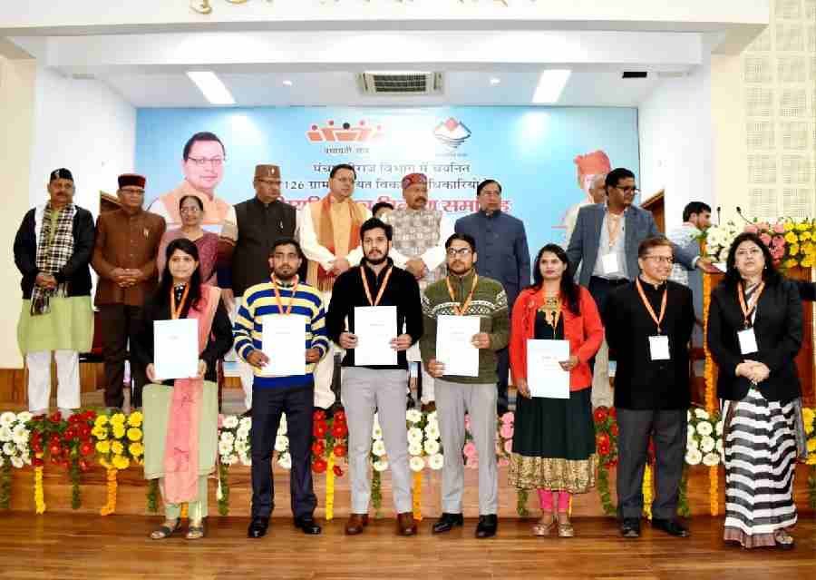 उत्तराखण्ड अधीनस्थ सेवा चयन आयोग के माध्यम से ग्राम पंचायत विकास अधिकारियों के 126 पदों पर चयन के उपरांत गुरुवार को मुख्य सेवक सदन, मुख्यमंत्री आवास में प्रदेश के मुख्यमंत्री पुष्कर सिंह धामी ने एक समारोह के दौरान उन्हें नियुक्ति सौंपे।