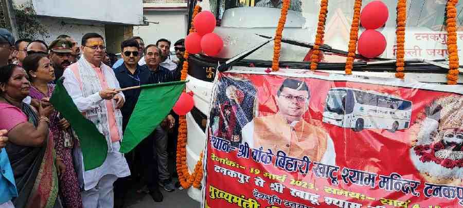 रविवार को मुख्यमंत्री पुष्कर सिंह धामी ने टनकपुर के शारदा चुंगी के समीप स्थापित खाटू श्याम मंदिर में पूजा अर्चना कर ईश्वर से प्रदेश की सुख शान्ति की कामना की। पूजा अर्चना के बाद मुख्यमंत्री एवं जनपद चंपावत की प्रभारी मंत्री श्रीमती रेखा आर्या द्वारा हरी झंडी दिखाकर खाटू श्याम के लिए परिवहन निगम की बस को रवाना किया गया। मुख्यमंत्री पुष्कर सिंह धामी ने कहा कि टनकपुर, बनबसा एवं खटीमा समेत अन्य शहरों की जनता के लिए आज का दिन बहुत खुशी का दिन है। अब टनकपुर बनबसा एवं खटीमा के लोगों को सीधे टनकपुर से खाटू श्याम के लिए दर्शन हेतु सुविधा मिल गई है।