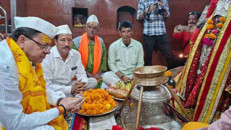 इससे पहले मुख्यमंत्री ने सिद्धपीठ हाटकलिका मंदिर में माँ महाकाली की पूजा-अर्चना कर प्रदेश की खुशहाली की कामना की। मुख्यमंत्री ने श्री महाकाली मंदिर परिसर में एक रुद्राक्ष का पौधा लगाकर एक पेड़ मां के नाम अभियान के तहत वृक्षारोपण कर आम जनमानस को संदेश दिया कि सभी जनमानस अवश्य एक पेड़ मां के नाम अभियान के तहत वृक्षारोपण करें। इस अवसर पर मुख्यमंत्री ने क्षेत्र के विकास से संबंधित अनेक घोषणा की जिसमें विकास खण्ड बेरीनाग के अंतर्गत चौड़मनिया – कीमतोली मोटर मार्ग पर सेतु निर्माण का कार्य ,राजीव गांधी नवोदय विद्यालय गंगोलीहाट की चार दिवारी का निर्माण कार्य, राजकीय इंटर कॉलेज गंगोलीहाट के मैदान का चौड़ीकरण तथा गंगोलीहाट में ट्रॉमा सेंटर बनाने, राजकीय कन्या इंटर कॉलेज भवन की मरम्मत किये जाने, न्याय पंचायत केंद्र पोखरी में स्थित विद्यालय को उच्चीकृत किये जाने, सरयू तथा रामगंगा के संगम स्थल पनार घाट का सौंदर्यीकरण किये जाने के साथ ही राजकीय महाविद्यालय गणाई में पुस्तकालय का निर्माण किये जाने की घोषणाएं की गई।