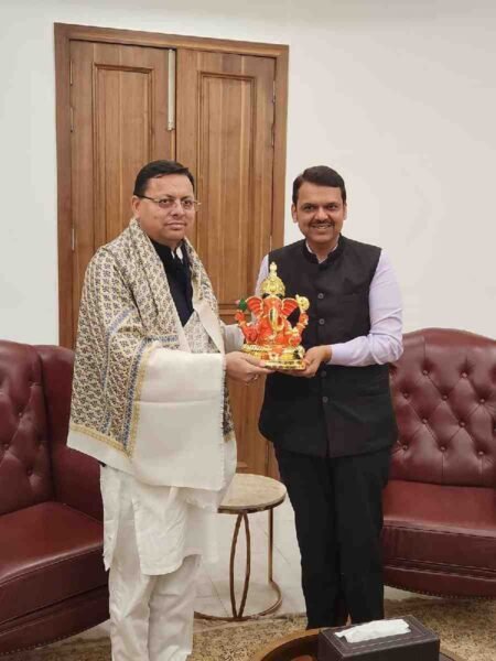 मुख्यमंत्री धामी ने महाराष्ट्र के उपमुख्यमंत्री देवेंद्र फडणवीस के शासकीय आवास पर पहुंचकर की शिष्टाचार भेंट