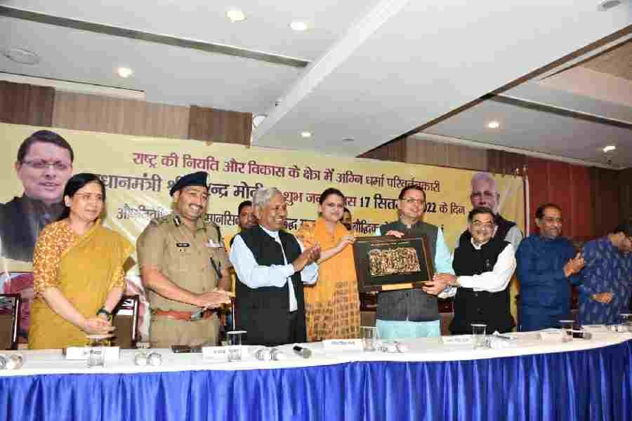 मुख्यमंत्री पुष्कर सिंह धामी ने शनिवार को राजपुर रोड स्थित होटल में प्रधानमंत्री नरेन्द्र मोदी साहित्य प्रदर्शनी का शुभारम्भ किया। उन्होंने प्रधानमंत्री नरेन्द्र मोदी के जन्मदिन के अवसर पर औपनिवेशिक दास मानसिकता के विरूद्ध बौद्धिक विमर्श कार्यक्रम को भी सम्बोधित किया। उन्होंने कहा कि औपनिवेशिक दास मानसिकता एवं गुलामी के प्रतीकों को मिटाने का कार्य प्रधानमंत्री मोदी के कार्यकाल में हो रहा है।