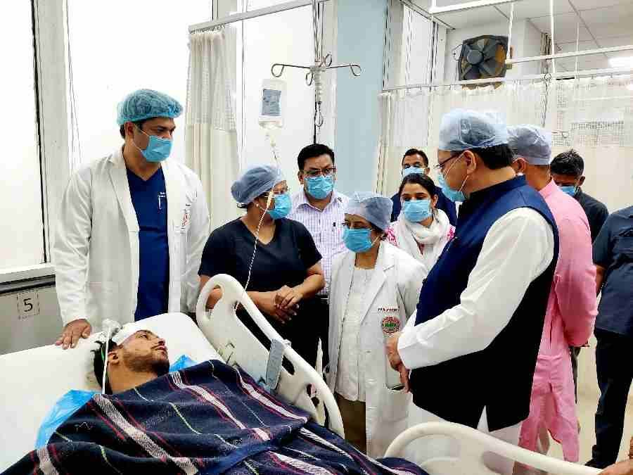 मुख्यमंत्री पुष्कर सिंह धामी ने शनिवार को एम्स, ऋषिकेश में उपचार हेतु भर्ती रुद्रप्रयाग में हुई वाहन दुर्घटना के घायलों का हालचाल जाना।