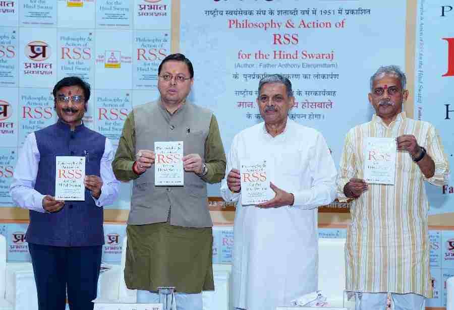 मुख्यमंत्री पुष्कर सिंह धामी ने आई आर डी टी सभागार देहरादून में आयोजित कार्यक्रम में राष्ट्रीय स्वयंसेवक संघ पर पुर्नप्रकाशित पुस्तक के संस्करण फिलॉसोफी एंड एक्शन ऑफ़ आरएसएस फॉर हिन्द स्वराज का लोकार्पण किया। इस अवसर पर राष्ट्रीय स्वयंसेवक संघ के सरकार्यवाह,श्री दत्तात्रेय होसबोले , राष्ट्रवादी चिंतक एवं ‘प्रज्ञा प्रवाह’ विशिष्ट वैचारिक मंच के संयोजक, श्री जे. नंदकुमार भी उपस्थित थे।