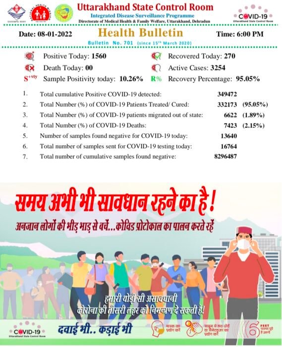 स्वास्थ्य विभाग द्वारा जारी हेल्थ बुलेटिन उत्तराखंड में कोरोना मरीजों का आंकड़ा पहुंचा 349472