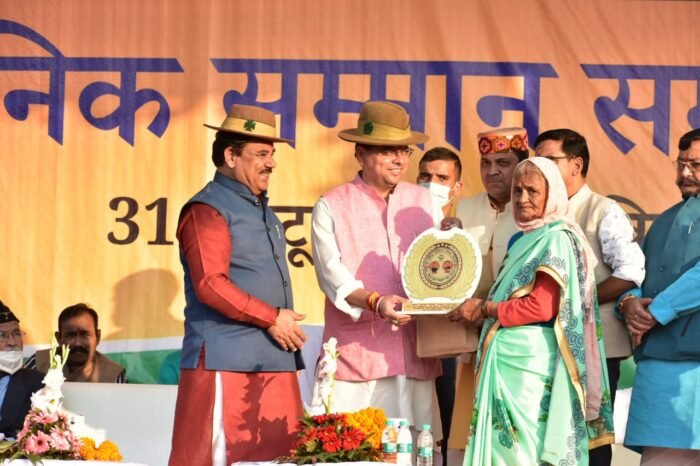 मुख्यमंत्री पुष्कर सिंह धामी ने रविवार को कोटद्वार स्थित विजय गार्डन में आयोजित सैनिक सम्मान समारोह में प्रतिभाग किया। इस दौरान मुख्यमंत्री ने पूर्व सैनिकों, सैनिक परिवारों और वीरांगनाओं को सम्मानित किया।