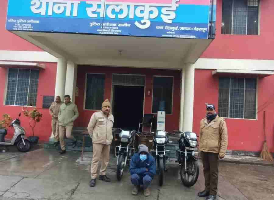 वाहन चोरी की घटना के अनावरण हेतु वरिष्ठ पुलिस अधीक्षक देहरादून के निर्देशों पीकर थाना सेलाकुई पर पुलिस टीम का गठन किया गया।गठित टीम द्वारा घटना स्थल के आस-पास आने जाने वाले रास्तों पर लगे सीसीटीवी कैमरों की फुटेजों का अवलोकन करते हुए संदिग्धों के सम्बन्ध में जानकारी एकत्रित की गयी, साथ ही सीसीटीवी फुटेजों से प्राप्त संदिग्धों के हुलिये से स्थानीय मुखबिर तंत्र को भी अवगत कराते हुए सक्रिय किया गया तथा सुरागरसी पतारसी करते हुए पूर्व में वाहन चोरी की घटनाओं में जेल में गये अभियुक्तों की वर्तमान स्थिती की जानकारी कर उनका भौतिक सत्यापन किया गया। पुलिस टीम द्वारा किये जा रहे लगातार प्रयासों के परिणाम स्वरूप दिनाँक 27/12/2024 को पुलिस टीम द्वारा चैकिंग के दौरान मुखबिर की सूचना पर पिरामिड होटल के पास से 01 अभियुक्त जुबेर को उक्त घटना से संबंधित चोरी के वाहन के साथ गिरफ्तार किया गया। अभियुक्त से सख्ती से पूछताछ करने पर उसके द्वारा अन्य स्थानों से भी वाहन चोरी की घटनाओं को अंजाम दिया जाना स्वीकार किया गया। अभियुक्त की निशानदेही पर पुलिस टीम द्वारा पिरामिड होटल के पास झाड़ियां से चोरी करके छिपाई गयी 02 अन्य मोटरसाइकिलें बरामद की गई, जिनके सम्बंध में जानकारी की जा रही है।