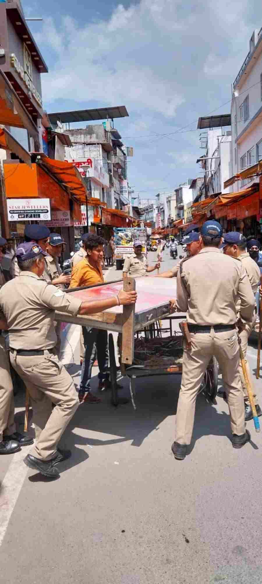 आम जनमानस को असुविधा से बचाने तथा अवैध अतिक्रमण के विरूद्ध कार्यवाही किये जाने हेतु वरिष्ठ पुलिस अधीक्षक देहरादून द्वारा सभी अधीनस्थों को अपने-अपने थाना क्षेत्रों में अभियान चलाते हुए कार्यवाही किये जाने हेतु निर्देशित किया गया है। निर्देशों के अनुपालन में *कोतवाली नगर क्षेत्र के पलटन बाजार, सीएनआई चौक, तहसील चौक , डिस्पेंसरी रोड, इना मुल्ला बिल्डिंग, राजा रोड, धामावाला, घण्टाघर* में दून पुलिस द्वारा अभियान चलाते 60 से अधिक दुकानदारों के विरूद्ध कार्यवाही करते हुए 40 ठेलियों, 35 रिंग, 30 बैनर बोर्ड, 22 स्टूल मेज को जब्त किया गया।