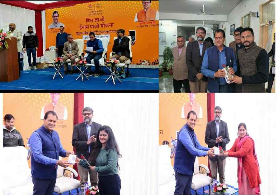 वित्त मंत्री डॉ प्रेमचंद अग्रवाल ने बिल लाओ, इनाम पाओ योजना के प्रथम व द्वितीय लकी ड्रा के विजेताओं को मोबाइल फ़ोन, स्मार्ट वाच, एयर बड्स वितरित किये। इस दौरान सबसे ज्यादा बिल अपलोड करने वालों को भी सराहा गया। इस मौके पर विजेताओं ने सरकार की जीएसटी बिल जागरूकता को लेकर की जा रही इस योजना की प्रशंसा की।