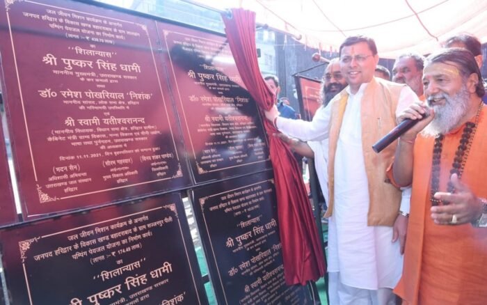 मुख्यमंत्री पुष्कर सिंह धामी बृहस्पतिवार को हरिद्वार के गैंडीखाता क्षेत्र स्थित बसोचन्दपुर में श्री कृष्णायन देशी गोरक्षाशाला में आयोजित गोपाष्टमी महोत्सव में शामिल हुये। इस अवसर पर मुख्यमंत्री ने विकासखण्ड बहादराबाद के विभिन्न ग्रामों के लिए जल जीवन मिशन कार्यक्रम के अन्तर्गत ग्राम गैण्डीखाता में 2.39 करोड़, ग्राम कांगड़ी में 2 करोड़, ग्राम लहाड़पुर में 97 लाख, ग्राम लालढांग में 4.40 करोड़, ग्राम सज्जनपुर पीली में 1.75 करोड़, ग्राम श्यामपुर नौआबाद में 1.71 करोड़, ग्राम नौरंगाबाद में 2 करोड़, ग्राम अहमदपुर चिड़ियापुर में 1.33 करोड़, ग्राम रसूलपुर मिट्ठीबेरी में 3.29 करोड़, ग्राम गाजीवाली में 2.80 करोड़, ग्राम तपड़ोवाली (गुज्जर बस्ती) में 4.37 करोड़, ग्राम जसपुर चमरिया में 2.22 करोड़, ग्राम समसपुर कटेबड़ में 96.02 लाख, ग्राम पीली पड़ाव में 2.84 करोड़ की पम्पिंग पेयजल योजनाओं के निर्माण निर्माण कार्यों का शिलान्यास किया।
