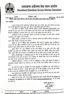 उत्तराखण्ड अधीनस्थ सेवा चयन आयोग द्वारा आज 02 भर्ती विज्ञापनों के द्वारा कुल 1614 पदों पर भर्ती प्रक्रिया प्रारम्भ की गयी है। गृह विभाग के अंतर्गत आरक्षी (नागरिक पुलिस) आरक्षी (पीएसी / आईआरबी) तथा फायरमैन के कुल 1521 पदों पर भर्ती प्रक्रिया प्रारम्भ की गयी है। वहीं एक अन्य विज्ञप्ति के द्वारा विभिन्न विभागों में सांख्यिकी व संगणक श्रेणी के 93 पदों पर भर्ती प्रक्रिया प्रारम्भ की गयी है। सांख्यिकी के पदों पर ऑनलाइन आवेदन पत्र 30 दिसंबर से प्रारम्भ होंगे व 12 फरवरी 2022 तक आवेदन पत्र भरे जायेंगे। पुलिस आरक्षी व फायरमैन के पदों पर ऑनलाइन आवेदन की प्रक्रिया 03 जनवरी 2022 से प्रारम्भ होकर 16 फरवरी 2022 तक चलेगी। पुलिस के पदों पर शैक्षिक अर्हता इंटरमीडिएट रखी गयी है। पुरुष अभ्यर्थियों के लिए आयु सीमा 18-23 वर्ष तथा महिला अभ्यर्थियों के लिए 18-26 वर्ष रखी गयी है। इसमें एक वर्ष की छूट राज्य सरकार के द्वारा कोविड संक्रमण के प्रभावों के कारण दी गयी है।