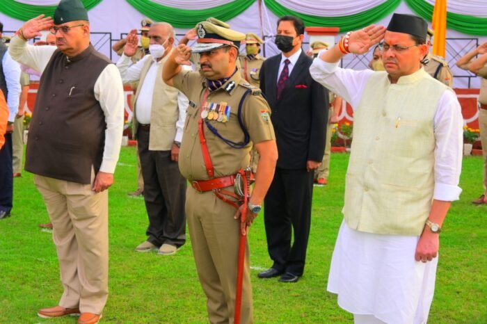 मुख्यमंत्री पुष्कर सिंह धामी ने गुरूवार को पुलिस लाईन, देहरादून में पुलिस स्मृति दिवस के अवसर पर शहीद स्मारक पर पुलिस एवं अर्द्ध सैन्य बलों के शहीदों को पुष्प चक्र अर्पित कर श्रद्धांजलि अर्पित की तथा उत्तराखण्ड के शहीद पुलिस जवानों के परिजनों को सम्मानित भी किया।