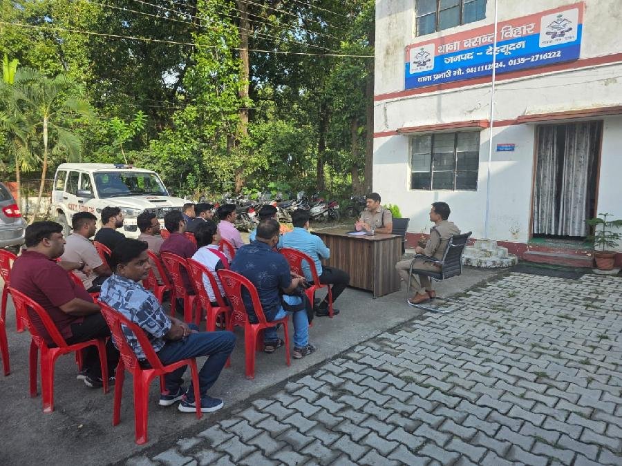 आगामी त्योहारी सीजन के दृष्टिगत वरिष्ठ पुलिस अधीक्षक देहरादून द्वारा आगामी त्योहारी सीजन के दृष्टिगत सभी अधीनस्थों को अपने-अपने क्षेत्रान्तर्गत स्थित ज्वेलरी शोरूम के प्रबंधकों/ मैनेजरों व व्यापार मडंल के पदाधिकारियों के साथ जागरूकता गोष्ठी आयोजित किये जाने हेतु निर्देशित किया गया है । जिसके अनुपालन में आज दिनाक : 07-10-25 को थानाध्यक्ष बसंत विहार द्वारा क्षेत्र में पड़ने वाले समस्त ज्वैलरी शॉप/शो रूम के मालिकों/मैनेजरो की एक गोष्ठी का आयोजन किया करते हुए सुरक्षा उपायों के सम्बंध में जागरूक किया गया।