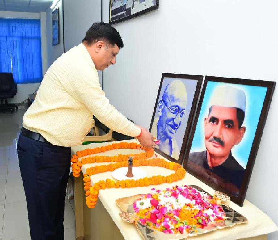 राष्ट्रपिता महात्मा गांधी जी एवं भारत के पूर्व प्रधानमंत्री स्वर्गीय लाल बहादुर शास्त्री जी की जयंती के अवसर पर सूचना एवं लोक संपर्क विभाग, उत्तराखंड में श्रद्धांजलि कार्यक्रम आयोजित किया गया। इस अवसर पर विभाग के महानिदेशक बंशीधर तिवारी सहित अधिकारियों एवं कर्मचारियों ने गांधी जी और शास्त्री जी के चित्र पर पुष्पांजलि अर्पित कर उन्हें नमन किया।