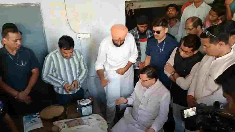 मुख्यमंत्री पुष्कर सिंह धामी ने खटीमा पहुंचते ही कृषि उत्पादन मण्डी समिति के एसएमआई के धान क्रय केन्द्र का औचक निरीक्षण किया। उन्होंने निरीक्षण के दौरान धान क्रय से संबंधित विभिन्न पहलुओं पर विस्तार से जानकारी लेते हुए महत्वपूर्ण दिशा निर्देश दिए। उन्होंने नमी मापक यंत्र से धान की नमी भी मापी। कहा कि जितने भी हमारे धान क्रय केन्द्र लगे हैं, उन पर किसान की उपज की तौल ठीक प्रकार से हो और हमारे किसानों का धान का एक-एक दाना तौला जाना चाहिए और एक-एक दाने की खरीद होनी चाहिए। उन्होंने कहा कि अभी जो बारिश हुई है, उसके कारण धान में नमी हैं। निरीक्षण के दौरान किसानों ने धान की नमी का मानक 17 प्रतिशत से 20 प्रतिशत करने तथा प्राथमिकता से प्रदेश के किसानों का धान खरीदने की मांग की। उन्होंने कहा कि किसानों को नमी पर हर संभव राहत एवं किसानों की समय की जरूरत के अनुसार सभी पर काम करेंगे। उन्होंने कहा कि अधिकारियों को पूर्व में ही निर्देशित किया गया है कि प्रदेश के सारे किसानों का पूरे का पूरा धान तौला जाना चाहिए।