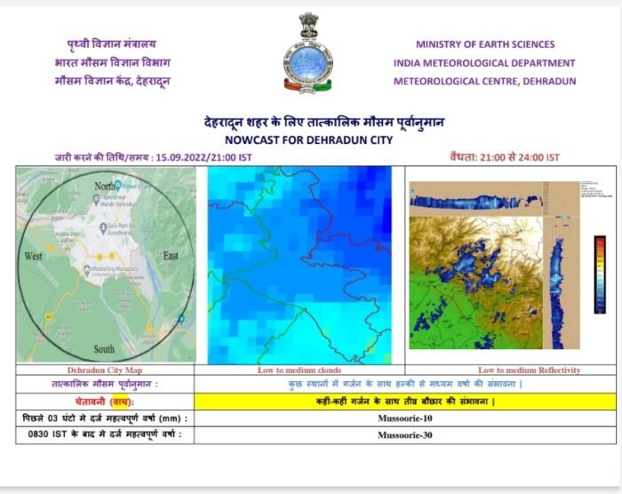 सचिवालय कन्ट्रोल रूम द्वारा अवगत कराया गया है कि मौसम विज्ञान केन्द्र देहरादून द्वारा आज रात्रि देहरादून जनपद में अत्यधिक वर्षा की चेतावनी दी गयी है। अतः अलर्ट हेतु निर्देशित किया गया है।