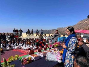 वृहस्पतिवार को राजकीय इंटर कॉलेज, बुरांसखंडा में भारतीय जनता युवा मोर्चा की राष्ट्रीय उपाध्यक्ष नेहा जोशी ने उत्तराखंड फर्स्ट अभियान के तहत नोटबुक वितरण एवं बच्चों के स्मार्ट क्लासेस के लिए कंप्यूटर सहित अन्य डिजिटल उपकरण भेंट किए। नेहा जोशी ने बच्चों के साथ संवाद करते हुए कहा कि जब बच्चे स्मार्ट क्लास में पढ़ेंगे तो स्मार्ट बनेंगे, इसके लिए शिक्षकों को भी स्मार्ट बनना होगा। उन्होंने कहा कि वह पूरे उत्तराखंड में विभिन्न कार्यक्रमों में जाती हैं, लेकिन जो परिवार का माहौल मसूरी विधानसभा में देखने को मिलता है और कहीं नहीं मिलता। उन्होंने बच्चों से आव्हान किया कि वे केवल पढाई में ही नहीं वरन खेलकूद, संस्कृति सहित अन्य गतिविधियों में भी प्रतिभाग कर अपनी प्रतिभा का प्रदर्शन करें। उन्होंने कहा कि ग्रामीण क्षेत्र के स्कूलों में कई तरह की कमिंयां होती है लेकिन यह विद्यालय ऐसा है जहां पूरे शिक्षक होने के साथ ही यहां के बच्चे शिक्षा, खेल, विज्ञान में विद्यालय का नाम रोशन कर रहे हैं, जबकि ये बच्चे मीलों पैदल चलकर स्कूल आते हैं। अगर इन्हें थोड़ा सहारा मिले तो ये निश्चित अपनी प्रतिभा का प्रदर्शन कर राज्य व देश में अपना नाम रोशन करेंगे। उन्होंने कहा कि जो प्राइवेट स्कूलों में सुविधाएं हैं वह सरकारी स्कूलों में लाने का प्रयास हम और मसूरी विधानसभा के विधायक गणेश जोशी जी कर रहे हैं। इसी कड़ी में यहां पर स्मार्ट क्लास के उपकरण दिए गये। इसके लिए उन्होंने यह भी कहा कि अगर इसके लिए प्रशिक्षण की आवश्यकता होगी तो उसका प्रबंध भी किया जायेगा। उन्होंनेे यह भी कहा कि जो बच्चे जीवन में संघर्ष कर आगेे बढते हैं उन्हें ही मंजिल मिलती है।