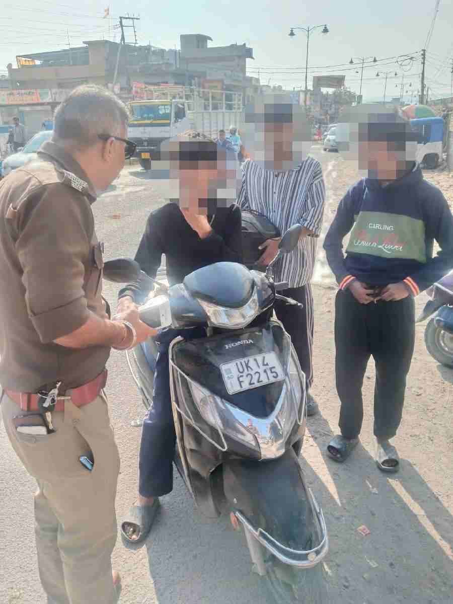 एसएसपी देहरादून द्वारा शुरू की गई नवीन पहल के तहत जनपद पुलिस द्वारा यातायात नियमों का उल्लघंन करने वाले वाहन चालकों विशेषकर युवा वर्ग के विरूद्ध लगातार प्रभावी कार्यवाही की जा रही है। इसी क्रम में आज दिनांक: 02-12-24 को विभिन्न थाना क्षेत्रों में पुलिस द्वारा कार्यवाही करते हुए बिना हेलमेट के 204 ,रेश ड्राइविंग/ओवरस्पीडिंग में 08, यातायात नियमो का उल्लंघन 129 में तथा नाबालिग द्वारा वाहन चलाने में 07 तथा ड्रंक एण्ड ड्राइव में 04 कुल 352 युवाओं के विरुद्ध चालानी कार्यवाही की गई। इस दौरान सभी 352 युवाओं के परिजनों से पुलिस द्वारा फोन पर वार्ता कर उनकी काउंसलिंग करते हुए उन्हें अपने नौनिहालों को यातायात नियमों के प्रति जागरूक करने के लिए प्रेरित किया गया।