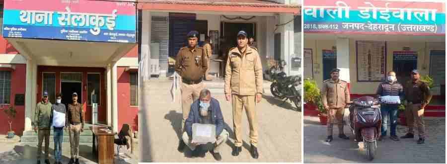 दिनांक 16/12/2024 को सेलाकुई पुलिस द्वारा चैकिंग के दौरान डिक्सन कम्पनी के पीछे स्थित ग्राउण्ड से एक अभियुक्त को 04 किलो 180 ग्राम अवैध गांजे के साथ गिरफ्तार किया गया। अभियुक्त के विरूद्ध थाना सेलाकुई पर एनडीपीएस एक्ट के अन्तर्गत अभियोग पंजीकृत किया गया।