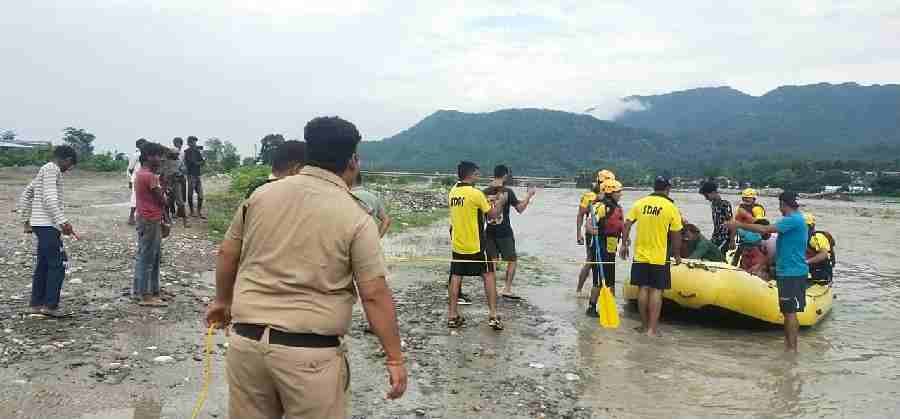 आज दिनांक 03/07/2025 को चौकी डाकपत्थर को स्थानीय व्यक्तियों द्वारा सूचना दी गई कि अशोक आश्रम डुमेट के सामने यमुना नदी में एक टापू में कुछ पुरुष तथा महिलाएं फंसे गये है, जिस पर तत्काल पुलिस बल मय आपदा उपकरण के साथ एसडीआरएफ टीम व जल पुलिस के साथ मौके पर पहुंचा, जहां कुछ लोग टापू में फंसे हुए थे, जिस पर पुलिस, एस0डी0आर0एफ0 व जल पुलिस द्वारा तत्काल रेस्क्यू अभियान चलाते हुए टापू में फंसे 11 व्यक्तियो(07 पुरूष व 04 महिला) को सकुशल बाहर निकाला गया। रेस्क्यू किये गये व्यक्तियो द्वारा बताया गया कि वह मजदूरी का कार्य करते है तथा वह सभी सुबह नदी में गए थे, अचानक जलस्तर बढने लगा, जिस कारण वह सभी एक टापू में इकट्ठे हो गए, टापू के चारों तरफ पानी होने की वजह से बाहर नहीं आ पाए। रेस्क्यू किये गये सभी व्यक्तियों द्वारा पुलिस द्वारा की गई त्वरित कार्यवाही की प्रशंसा कर उत्तराखण्ड पुलिस का आभार व्यक्त किया गया।