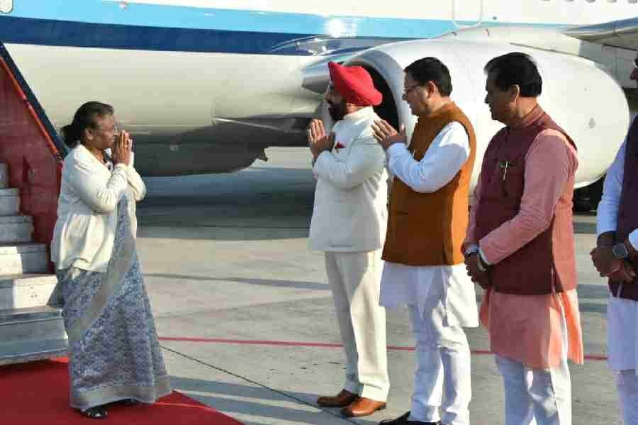 राष्ट्रपति श्रीमती द्रौपदी मुर्मु के उत्तराखंड आगमन पर गुरुवार को जौलीग्रांट एयरपोर्ट पर राज्यपाल लेफ्टिनेंट जनरल गुरमीत सिंह (से नि) तथा मुख्यमंत्री पुष्कर सिंह धामी ने उनका स्वागत किया। राष्ट्रपति श्रीमती द्रौपदी मुर्मु ने गार्ड ऑफ ऑनर का निरीक्षण किया। राष्ट्रपति श्रीमती द्रौपदी मुर्मु गुरुवार को उत्तराखंड में अपने प्रथम दो दिवसीय प्रवास पर देहरादून पहुंची हैं।