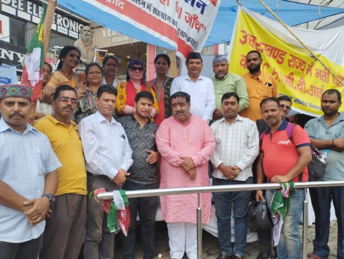 पेपर लीक व भर्ती घोटाले के विरोध में उत्तराखंड क्रांति दल के धरने को दिया शिव सेना ने समर्थन।