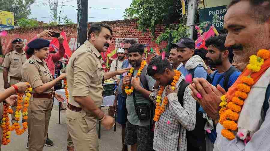 भ्रमण के दौरान कावड़ मेले में आये श्रद्धालुओं को फूल माला पहनाकर एसएसपी देहरादून द्वारा उनका स्वागत किया गया तथा उनसे वार्ता कर उनकी यात्रा के संबंध में जानकारी प्राप्त की गई। वार्ता के उपरांत सभी श्रद्धालुओं को फल, पेय पदार्थ तथा मिष्ठान वितरित करते हुए उनकी सुरक्षित एंव सुगम यात्रा हेतु अपनी शुभकामनाएं दी।