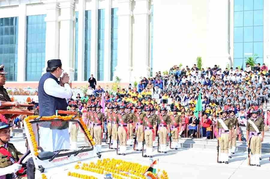 विधानसभा परिसर भराडीसैंण में राज्य स्थापना दिवस पर पुलिस एवं एनसीसी जवानों द्वारा विधानसभा परिसर में सेरेमोनियल परेड का आयोजन किया गया। उत्तराखंड राज्य स्थापना दिवस के अवसर पर विभिन्न विभागों द्वारा बहुउद्देशीय शिविर लगाकर विभिन्न उत्पादों की प्रदर्शनी के लिए स्टॉल लगाए गए। जिसमें विकास मुखी एवं कल्याणकारी योजनाओं को प्रदर्शित किया गया। मुख्यमंत्री ने विभागों द्वारा लगाए गए स्टालों का निरीक्षण भी किया। इस दौरान मुख्यमंत्री ने 47 राज्य आंदोलनकारियों को पुष्प माला व शाल भेंट कर सम्मानित भी किया।