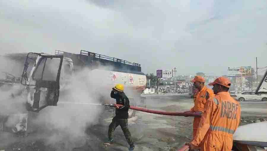 देहरादून के प्रेम नगर क्षेत्र में उत्तरांचल यूनिवर्सिटी प्रेम नगर गेट के सामने पेट्रोल से भरे एक टैंकर में अचानक आग लग गई। सड़क के बीचो-बीच गुजर रहे टैंकर में लगी आग से पूरे इलाके में हड़कंप मच गया। मौके पर पहुंची पुलिस ने भीड़ को तीतर बितर कर लोगों को टैंकर से दूर खदेड़ा ।