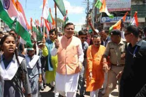 मुख्यमंत्री पुष्कर सिंह धामी ने शुक्रवार को शहीद स्थल खटीमा पहुंचकर आजादी का अमृत महोत्सव के अवसर पर हर घर तिरंगा अभियान में प्रतिभाग किया। इस अवसर पर मुख्यमंत्री ने उत्तराखंड राज्य आंदोलन में शहीद हुए राज्य आंदोलनकारियों के चित्र पर श्रद्धा सुमन अर्पित करते हुए नमन किया। उन्होंने देश की आजादी तथा देश व देश की सीमाओं की रक्षा में अपने प्राणों की आहुति देने वाले शहीदों, स्वतंत्रता सेनानियों को नमन किया।