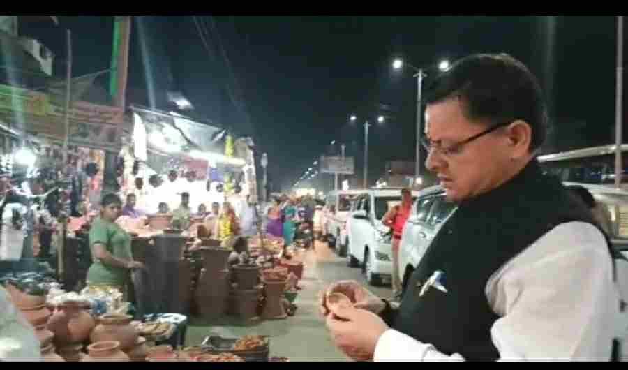 शनिवार को काशीपुर से खटीमा पहुंचे मुख्यमंत्री पुष्कर सिंह धामी ने खटीमा मुख्य बाजार में काफिला रुकवा कर मिट्टी से बने दियों की खरीददारी की।