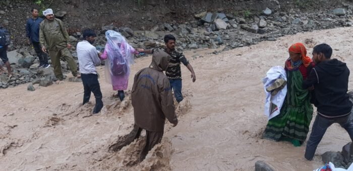 आज जनपद चम्पावत के थाना टनकपुर क्षेत्रान्तर्गत विभिन्न क्षेत्रो से श्री मां पूर्णागिरी दर्शन को आये हुए लगभग 150-200 श्रद्धालु जो आपदा अलर्ट के बावजूद भी चोरी छिपे पैदल-पैदल जंगल के रास्ते से बाटना गाड़ पर पहुंच गए थे। यहां पर पानी का बहाव तेज होने व मलबा और पत्थर गिरने के कारण वे मार्ग में ही फंस गये। जिस पर उनके द्वारा स्थानीय पुलिस को कॉल कर मदद मांगी गयी। सूचना मिलते ही एसआई देवेन्द्र सिंह मनराल चौकी प्रभारी ठुलीगाड़ के नेतृत्व में पुलिस टीम द्वारा तत्काल घटना स्थल पर पहुंच कर स्थानीय लोगों की मदद से रेस्क्यू अभियान चलाकर सभी श्रद्धालुओं को नाले से सुरक्षित पार कराकर वापस उनके निवास स्थान को भेजा गया।