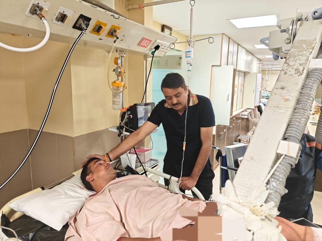 आज दिनांक 19 अक्टूबर 2025 की प्रातः समय करीब 3:45 पर आराघर टी जंक्शन पर पिकेट/चेकिंग ड्यूटी में नियुक्त पुलिसकर्मी हे०कां० सुगनपाल, कां० सचिन तथा कां० कमला प्रसाद द्वारा आराघर टी जंक्शन में वाहन चेकिंग के दौरान एक वाहन को रोकने पर चालक द्वारा तीनों पुलिसकर्मी को टक्कर मारकर गंभीर रूप से घायल कर दिया, जिनको तत्काल प्राथमिक चिकित्सा के लिए एम्बुलेंस 108 के माध्यम से नजदीकी अस्पताल ले जाया गया, जहाँ से उन्हें हायर सेंटर रेफर करते हुए सिनर्जी हॉस्पिटल में भर्ती कराया गया है, जहां पर तीनों पुलिस कर्मियों का इलाज चल रहा है।