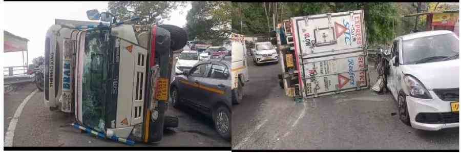 मसूरी में हादसों का सिलसिला जारी है जिसके तहत मसूरी देहरादून रोड पर मैगी प्वाइंट के पास एक डपंर अनियंत्रित हो गया और सड़क पर पलट गया वही डडंपर द्वारा दो वहानों को भी नुकसान पहुंचाया गया है। डंपर के सडक के बीचों बीच पलटने से यातायात बाधित हो गया जिससे सडक के दोनो ओर वहानों की कतार लग गई जिससे लोगो को भारी परेषानी का सामना करना पडा। बताया जा रहा है कि डंपर मसूरी से सामान खाली करके वापस देहरादून की ओर जा रहा था कि मैगी वइंट के पास डंपर अचानक से अनियंत्रित हो गया और सामने से आ रही एक कार और एक छोटे हाथी को मारता हुआ पलट गया वही डंपर चालक को हल्की चोट आई है जिसको नजदीकी अस्पताल में इलाज के लिए ले जाया गया है । घटना की सुचना मिलते ही कोठालगेट पुलिस मौके पर पहुंची और मामले की जांच में जुट गई। कोठाल गेट चौकी इंचार्ज मनोज भट्ट ने बताया कि घटना की सूचना मिलते ही वह फोर्स के साथ मौके पर पहुंचे और घटना में घायल डंपर चालक को अस्पताल ले जाया गया जहां पर उसका प्राथमिक उपचार किया गया। उन्होंने बताया कि डंपर की चपेट एक कार क्षतिग्रस्त हो गई वी एक छोटा हाथी को नुकसान पहुंचा है । उन्होंने बताया कि पूछताछ में पता चला कि डंपर चालक काफी तेज गति में था जिस वजह से वह मोड़ पर अनियंत्रित हो गया और सामने से आ रही जो कारों को टक्कर मारते हुए पलट गया उन्होंने कहा कि इस पूरी घटना में जनहानि नहीं हुई है। उन्होने बताया कि क्रेन के माध्यम से डंपर को सड़क किनारे करके सीधा किया गया और यातायात को व्यवस्थित किया गया ।उन्होंने बताया कि डंपर चालक से पूछताछ की जा रही है। वह जिन लोगो के वाहन क्षतिग्रस्त हुई है उनके द्वारा अभी तक कोई तहरीर नहीं दी गई है तहरीर मिलने पर नियमानुसार कार्रवाई की जाएगी। उन्होंने बताया कि 24 वर्शिय चालक नादिर अहमद पुत्र मोहम्मद ताहिर निवासी सुल्तानपुर उत्तर प्रदेश का रहने वाला है वह मसूरी सामान छोड़ने के लिए आया था।