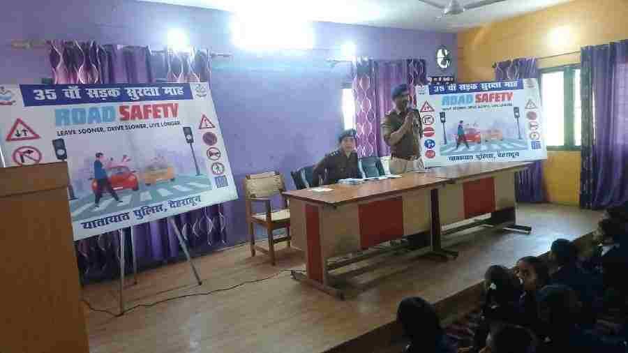 वर्तमान में सम्पूर्ण भारत में आम जन को यातायात नियमो के प्रति जागरूक करने के लिए चलाये जा रहे सडक सुरक्षा माह के अन्तर्गत दून पुलिस द्वारा स्कूली छात्र छात्राओं के मध्य जाकर यातायात नियमो के प्रति जागरूकता अभियान चलाया गया। अभियान के दौरान पुलिस लाईन स्थित पुलिस मार्डन स्कूल में आईटीडीए की टीम द्वारा उपस्थित छात्र-छात्राओं को यातायात नियमों तथा सड़क सुरक्षा के सम्बन्ध में विस्तृत जानकारी प्रदान करते हुए यातायात से सम्बन्धित रोड़ साइन (यातायात चिन्हों) के महत्व को विस्तृत रूप से समझाया गया, साथ ही पैदल रोड पार करने के दौरान अपनाई जानी वाली सावधानियों तथा रात्रि में वाहन चलाते समय लो बीम के प्रयोग के सम्बन्ध में जागरूक किया गया।