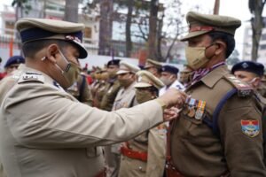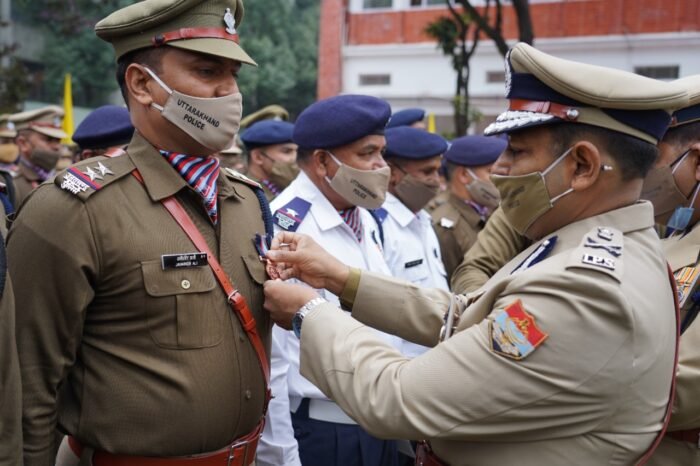 आज गणतंत्र दिवस-2022 के अवसर पर पुलिस मुख्यालय देहरादून में आयोजित कार्यक्रम में अशोक कुमार, पुलिस महानिदेशक, उत्तराखण्ड द्वारा ध्वजारोहण कर गणतंत्र दिवस संकल्प की शपथ दिलाई। इसके उपरान्त उन्होंने गणतंत्र दिवस 2022 के अवसर पर पुलिस कर्मियों को उत्कृष्ट सेवा सम्मान चिन्ह, सराहनीय सेवा सम्मान चिन्ह प्रदान कर सभी पदक विजेताओं को बधाई दी।