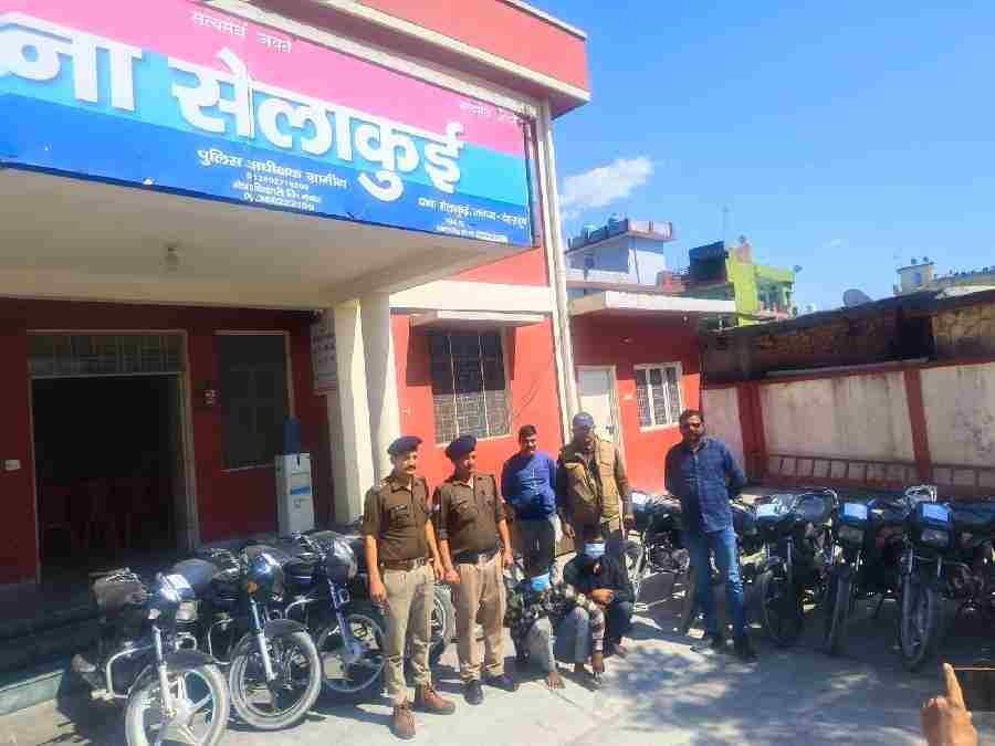 घटना में शामिल अभियुक्तों के सम्बन्ध में जानकारी करने पर पश्चिमी उत्तर प्रदेश के वाहन चोर गिरोह के उक्त घटनाओं में शामिल होने की पुलिस टीम को सूचना प्राप्त हुई, जिस पर पुलिस टीम द्वारा अभियुक्तों के संबंध में सुरागरसी पतारसी करते हुए मुखबिर की सूचना पर चोरी की घटनाओं में शामिल 02 अभियुक्तों शोभित राज तथा गीतम राजपूत को चेकिंग के दौरान इण्डस्ट्रीयल एरिया सेलाकुई से चोरी की गई मोटर साइकिल के साथ गिरफ्तार किया गया।